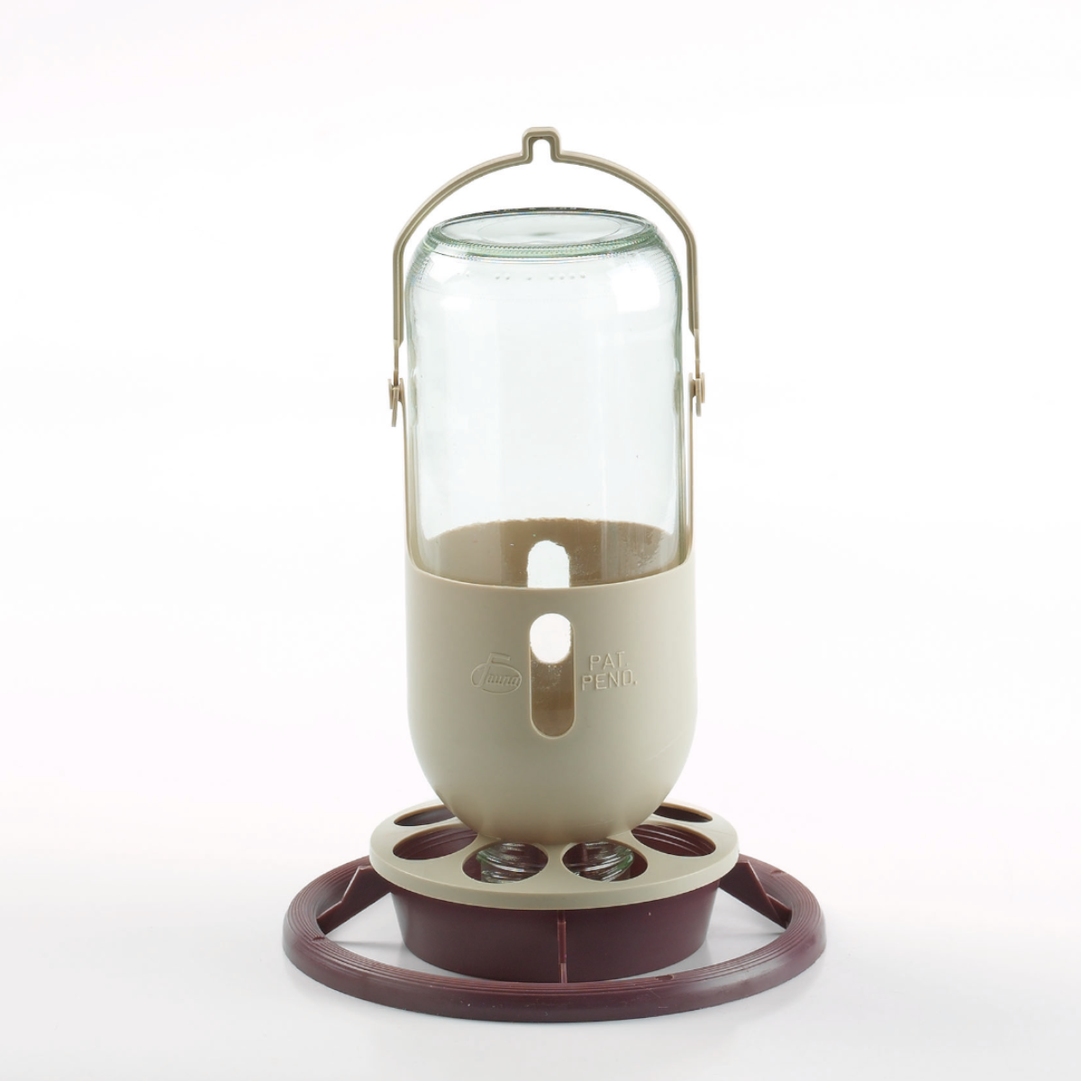 Comedero/bebedero botella de cristal para pájaros con botella de almacenamiento en cristal, permitiéndonos comprobar el nivel de agua.