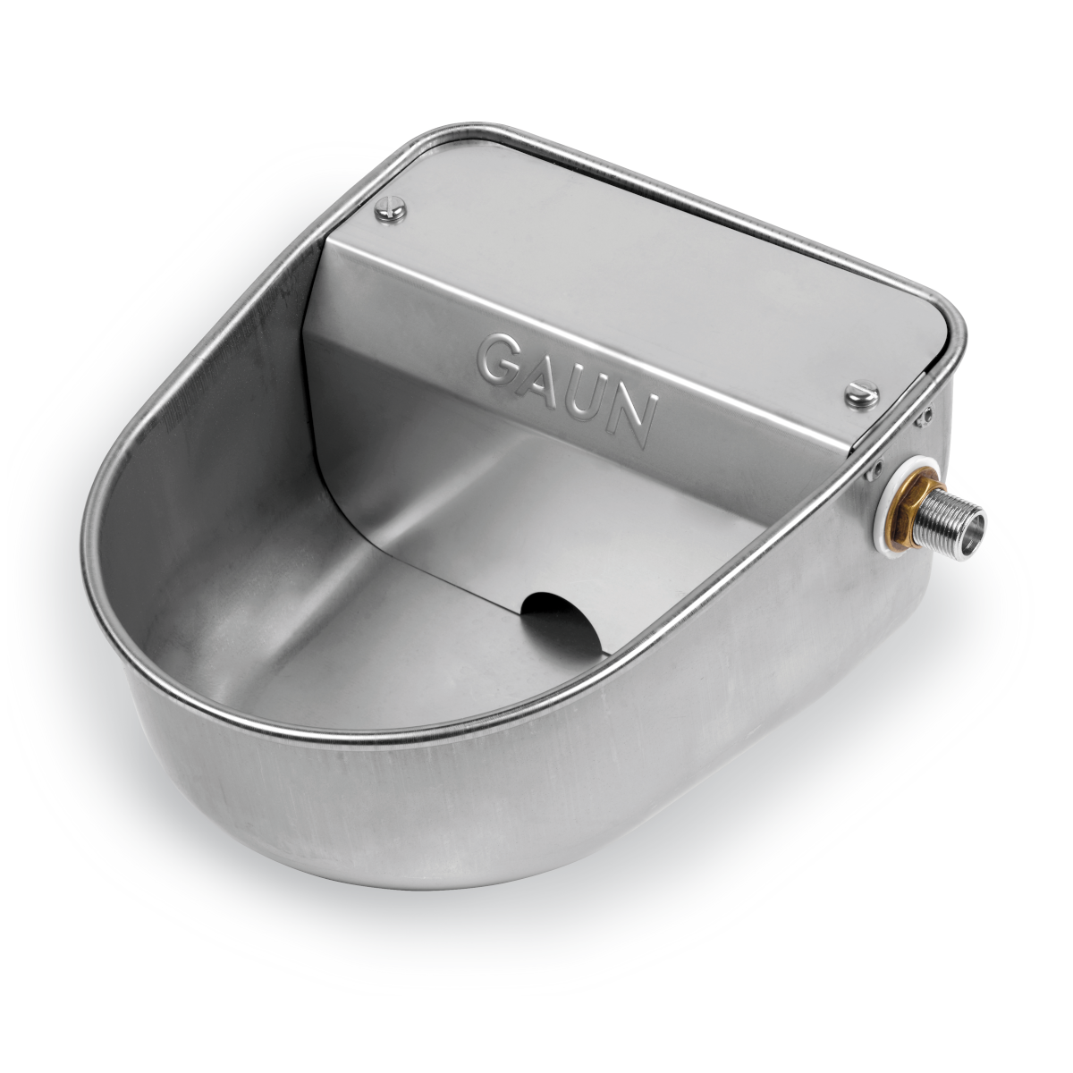 Bebedero para perros fabricado en acero inoxidable y con tapa en acero inoxidable. El bebedero se puede conectar a un depósito o directamente a la red principal. Incluye tornillos y tirafondos para anclar a la pared.