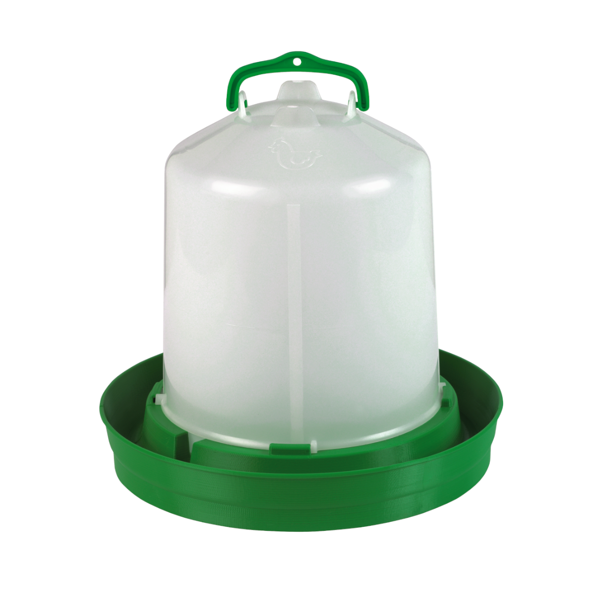 Bebedero para aves premium estilo tolva. Material de plástico resistente. El agua cae desde el depósito por gravedad manteniendo siempre el recipiente base lleno.