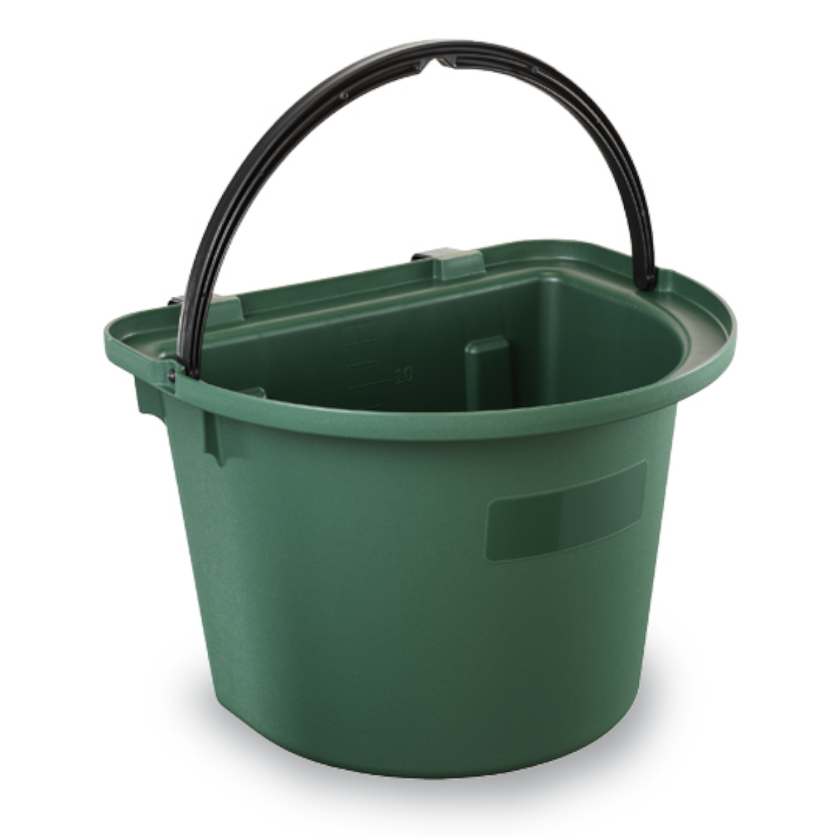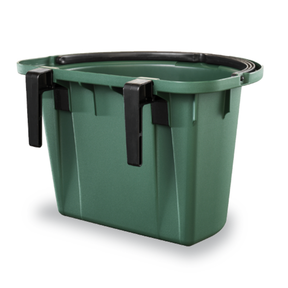 Comedero para caballos para colgar. Presenta 2 ganchos ajustables en función de la altura. También incluye un asa metálica con mango de plástico y un medidor de capacidad.