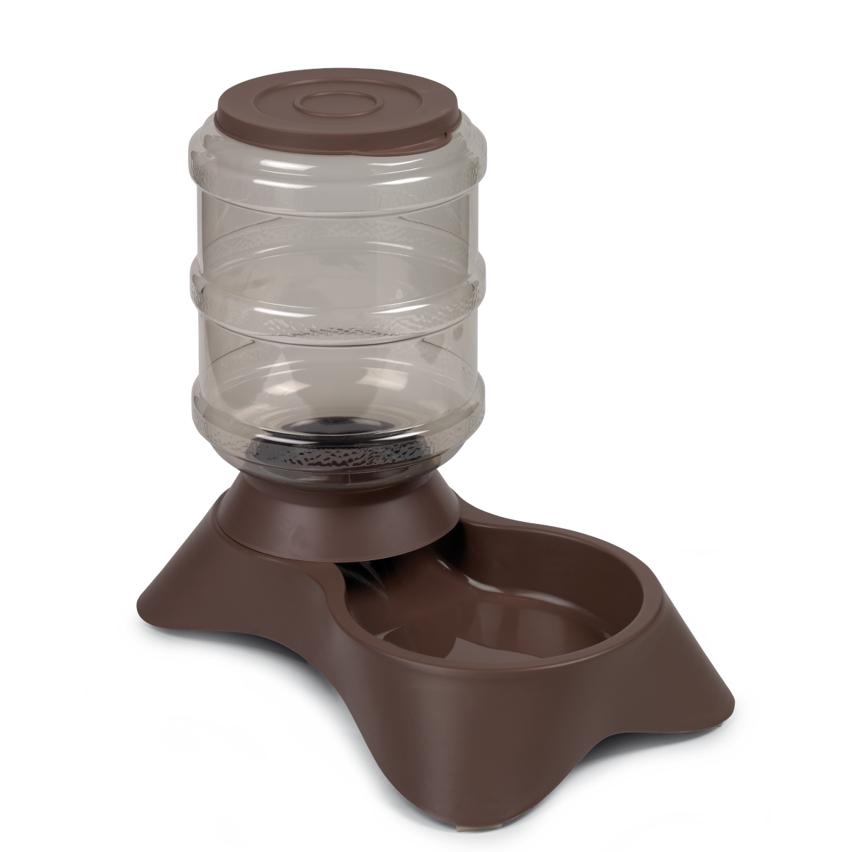 Comedero tipo tova elaborado con material de plástico en color marrón para la nutrición de las mascotas. Es un comedero tipo tolva para el uso de mascotas como perros y gatos. Se compone por dos piezas que se desmontan para una fácil limpieza. La botella tiene una capacidad de 3,8 litros de almacenamiento. La base es ancha y permite el acceso de la mascota al alimento. Está confeccionado con material de plástico de la mejor calidad, resistente y seguro.