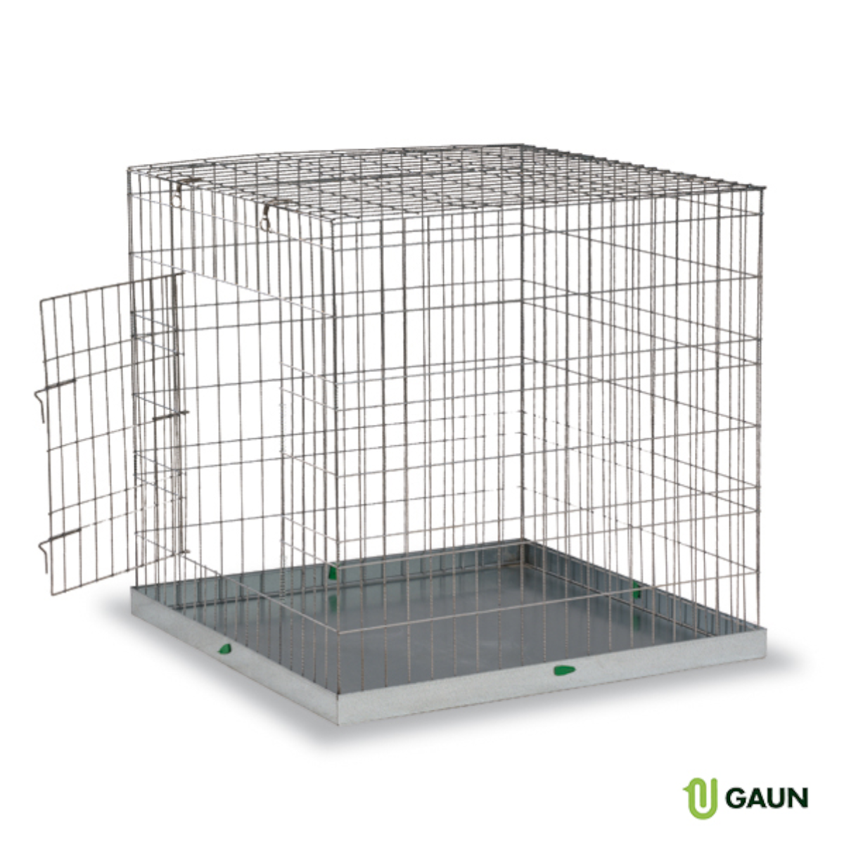 Jaula de exposición muy funcional para la exposición de mascotas en ferias y tiendas de animales. Su bandeja colectora inferior hecha con chapa galvanizada evita que la suciedad de los animales caiga al suelo y permite que se limpie fácilmente.