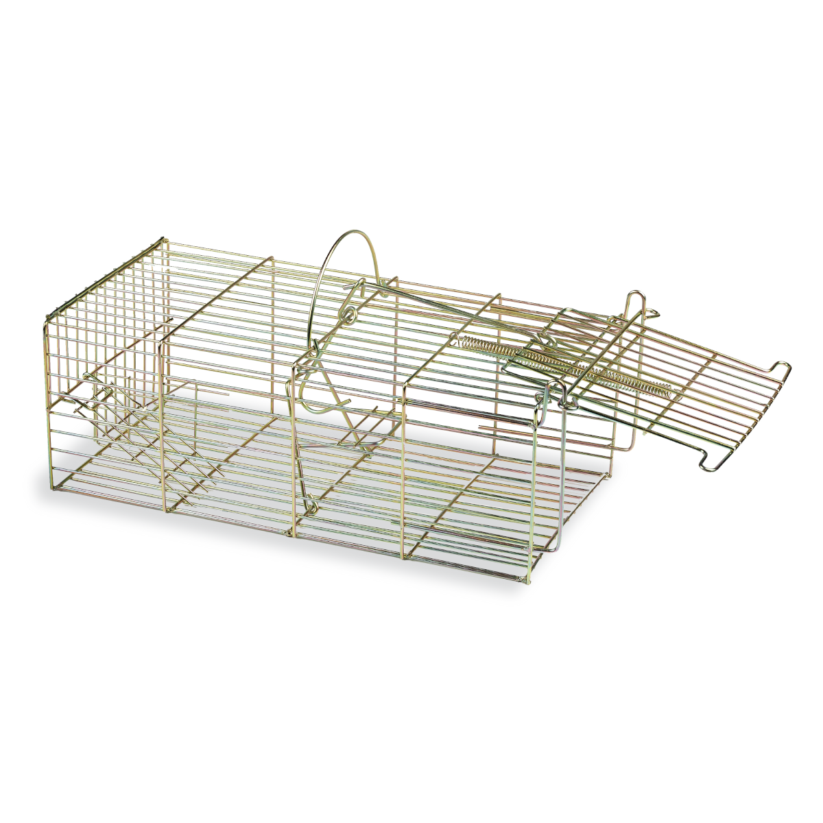 Esta jaula puede atrapar varios tipos de ratas o de ratones, es sorprendentemente eficiente en el funcionamiento. De tal modo que una vez que el roedor mueve el cebo se activa la válvula de cierre, y al mismo tiempo da lugar a que entren más ratones por la otra puerta. La puerta secundaria no permite la salida, solo el ingreso.