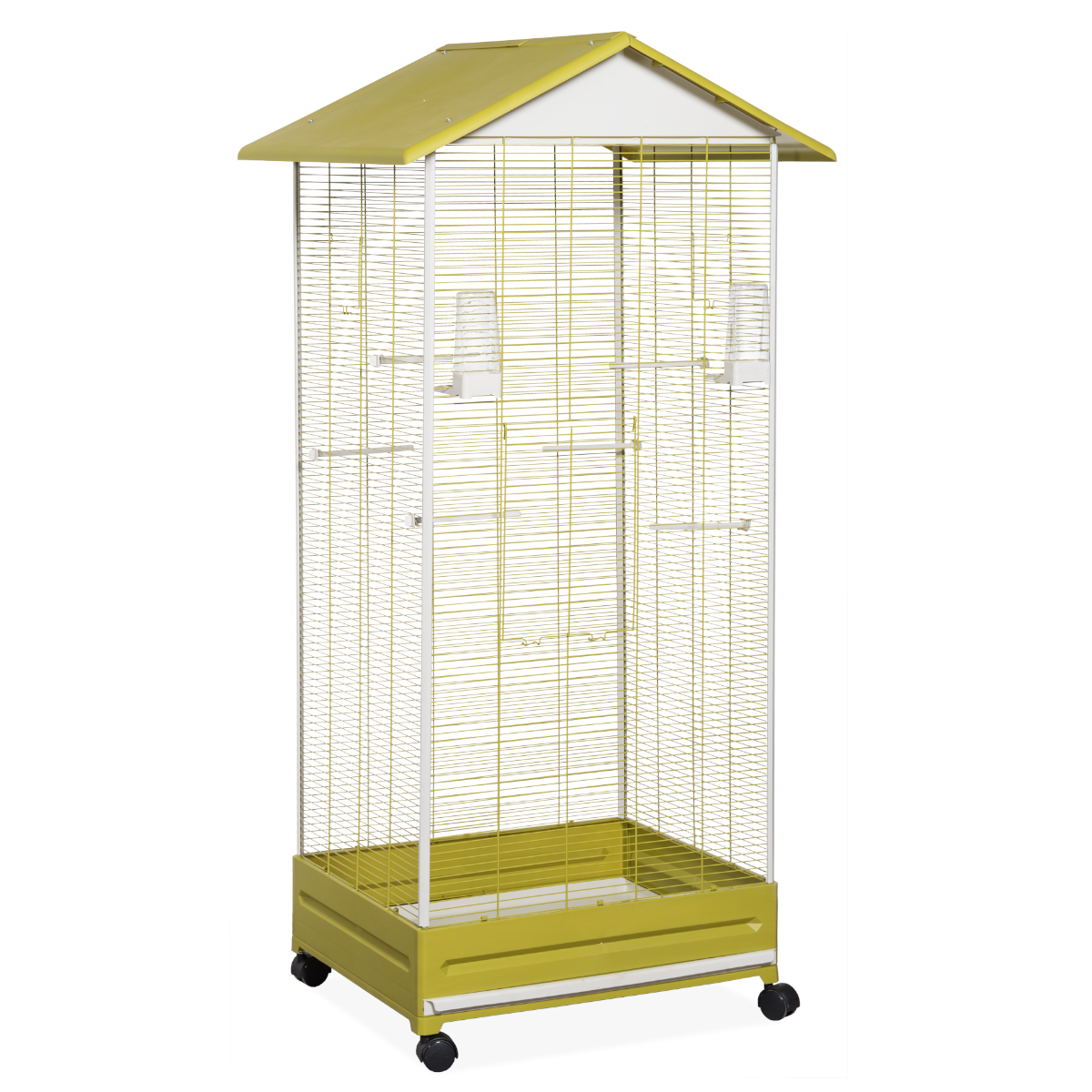 La pajarera 430 Oliva-crema Voltregà, está fabricada con rejilla metálica y techo, base y montantes en plástico, apto para exteriores e ideal para pájaros pequeños y medianos.