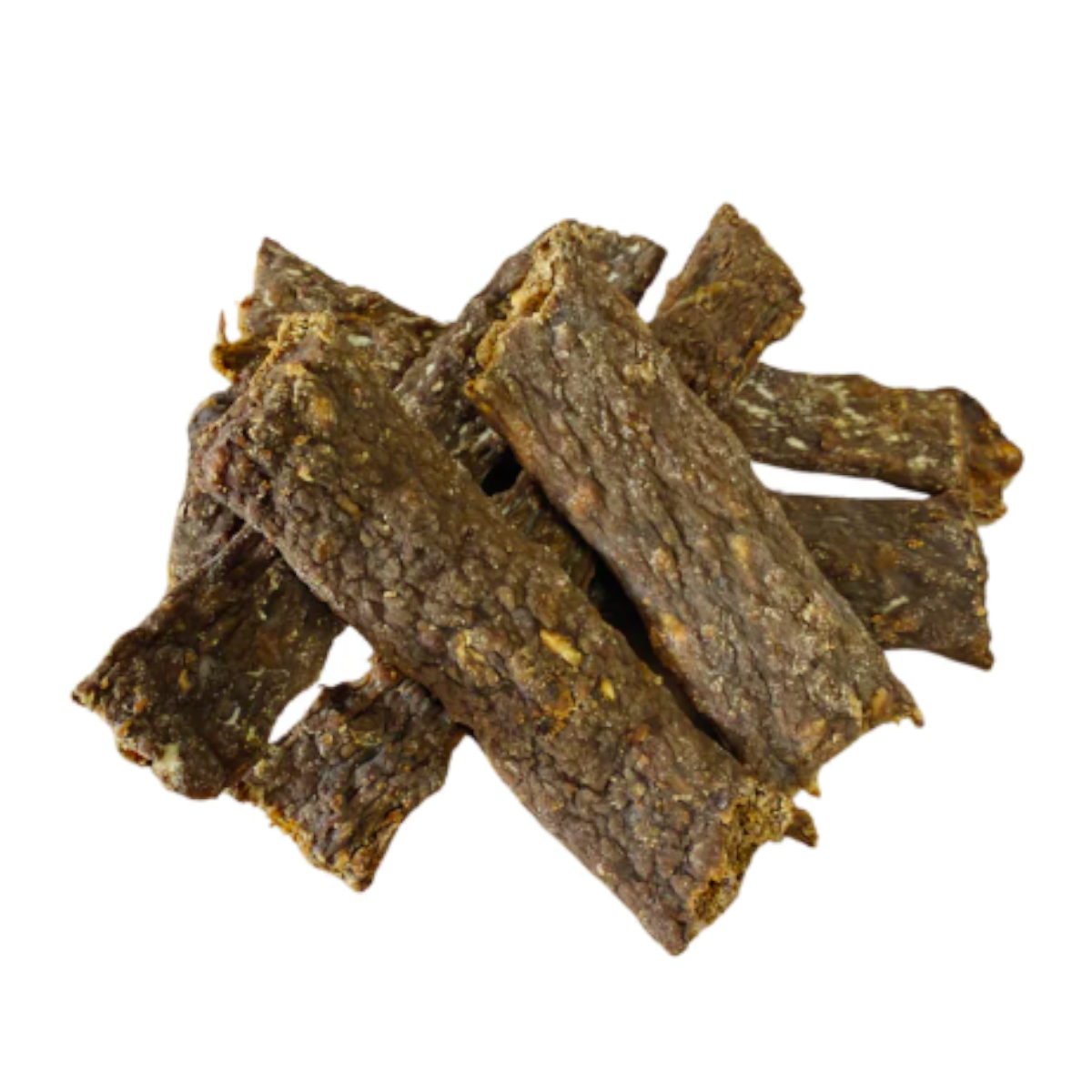 Son un sncak natural y saludable para mascotas, rico en proteínas de alta calidad que favorecen el desarrollo muscular y la energía diaria de las mascotas. Además, su textura masticable ayuda a mejorar la salud dental, reduciendo la acumulación de sarro y manteniendo los dientes limpios.