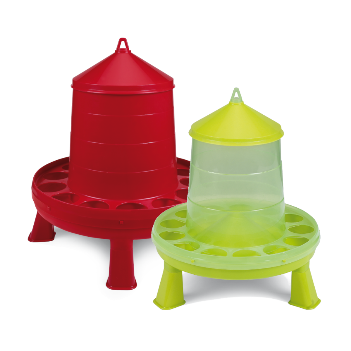 En el interior, el pienso se mantiene fresco y limpio durante mucho tiempo. Fácilmente rellenable a través de la gran abertura de llenado. Plástico duradero, higiénico y fácil de limpiar. La posición elevada permite una menor contaminación del alimento por la suciedad entrante. Los pies también se pueden quitar para alimentar a los pollitos y para facilitar la limpieza.