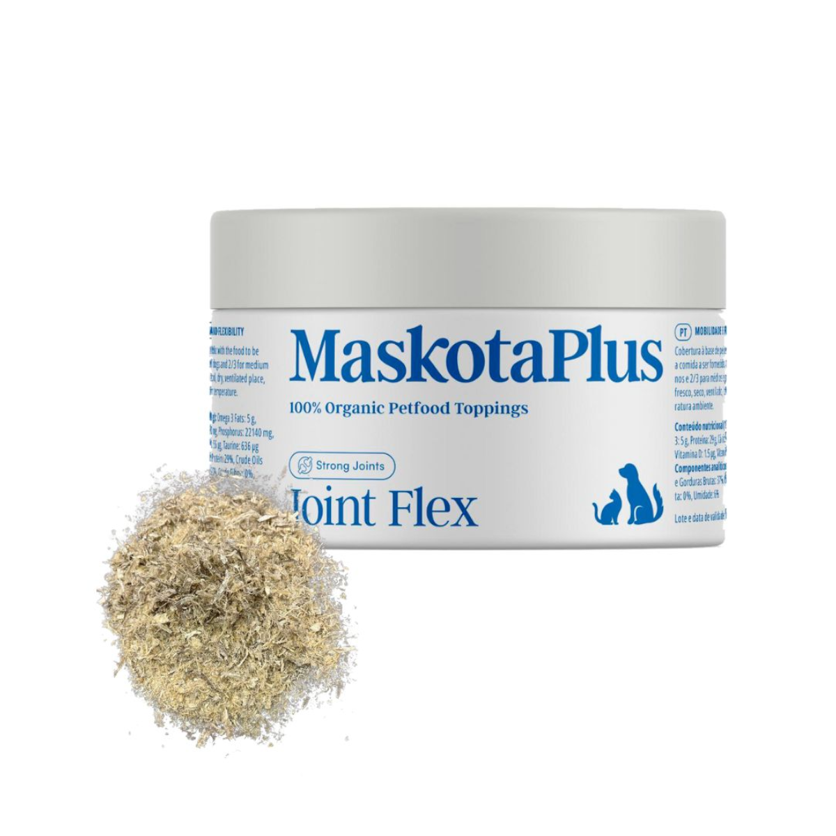 Topping a base de Cefalópodo deshidratado 60 %, piel y espina de pescado deshidratado 40%, especialmente formulado para mejorar la salud de las articulaciones en mascotas. Enriqueido con ingredientes que promueven la flexibilidad y el alivio del dolor articular, es ideal para mascotas con problemas de movilidad o en etapas avanzadas de su vida. Su fórmula avanzada apoya la regeneración del cartíkago y reduce la inflamación, garantizando una mejor calidad de vida y mayor agilidad para tu fiel compañero.